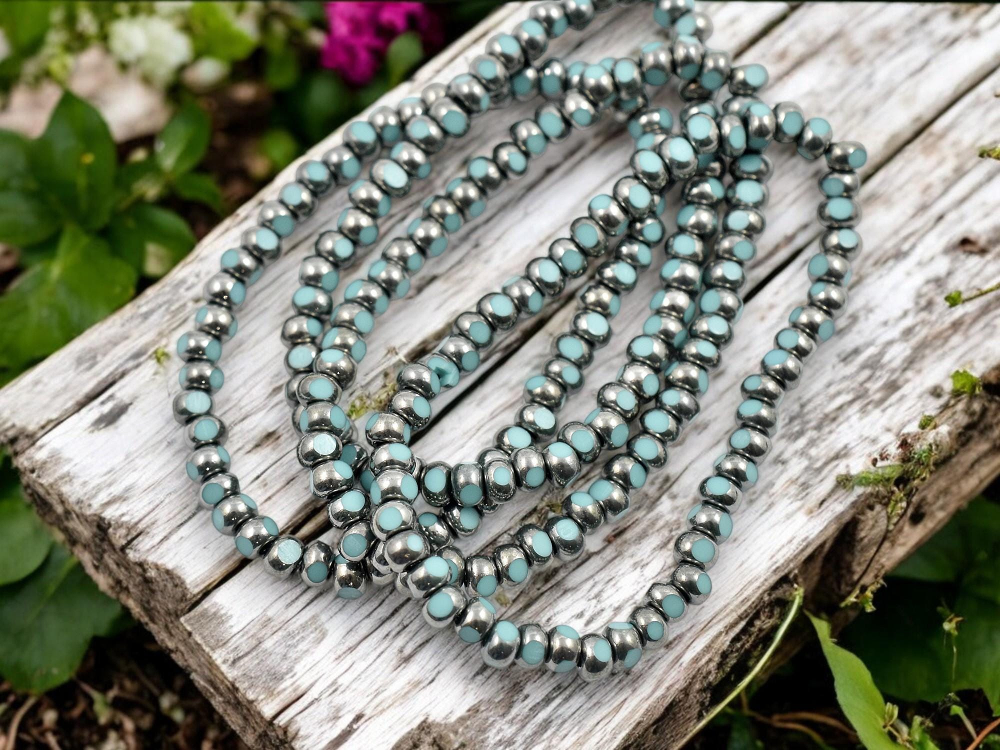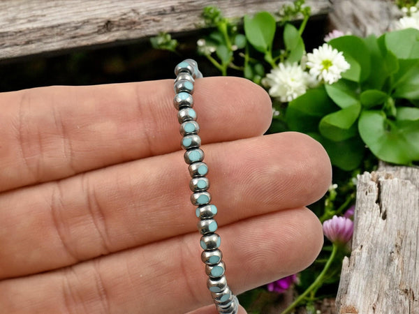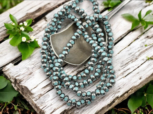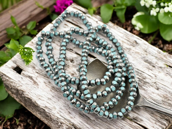 ♥ Color: Antique silver washed opaque turquoise