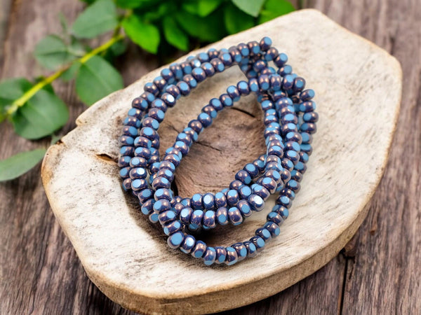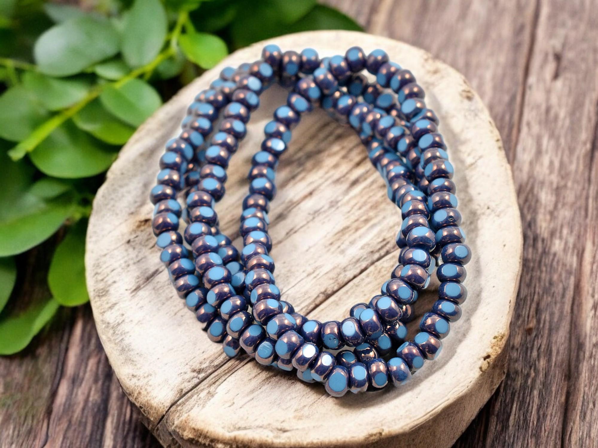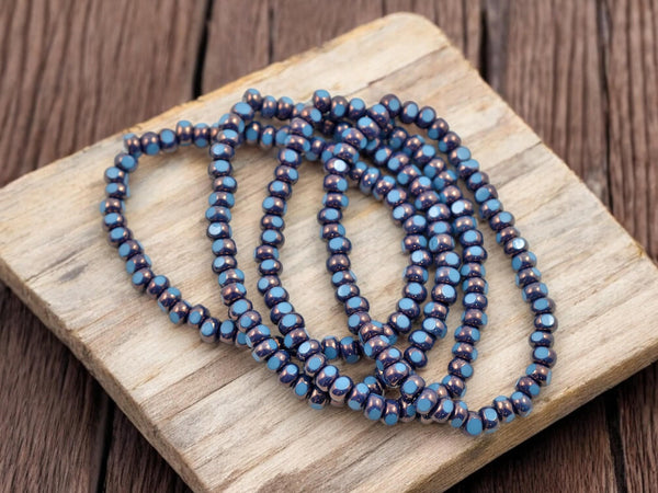*50* 4x3mm Bronze Washed Opaque Blue Turquoise Trica Beads