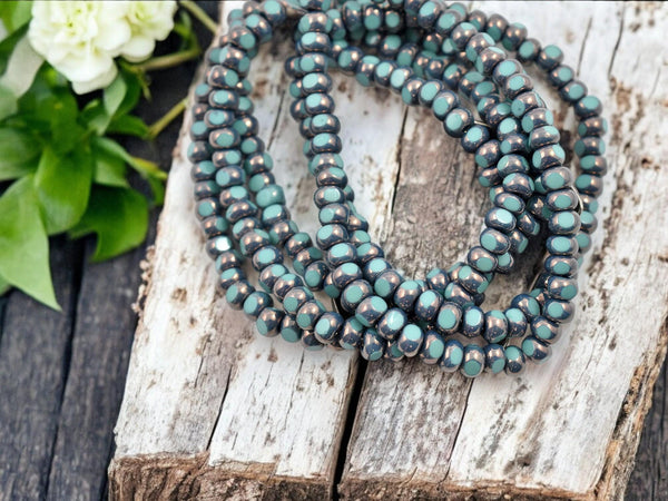 *50* 4x3mm Purple Bronze Washed Opaque Turquoise Trica Beads