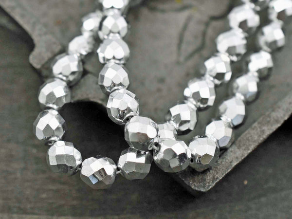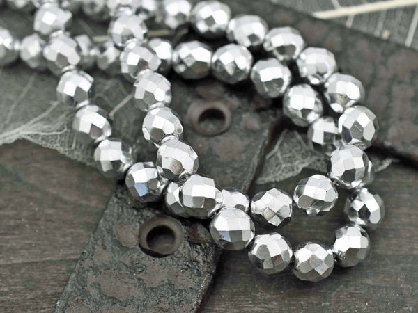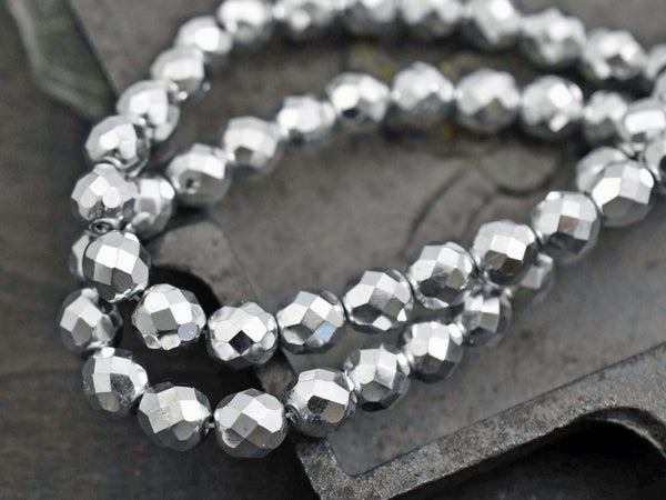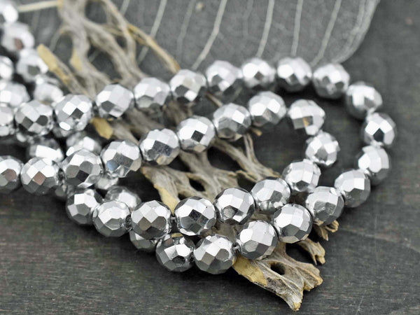 Silver Coated Fire Polished Round Beads -- Choose Your Size