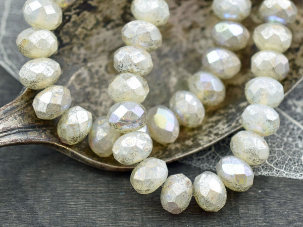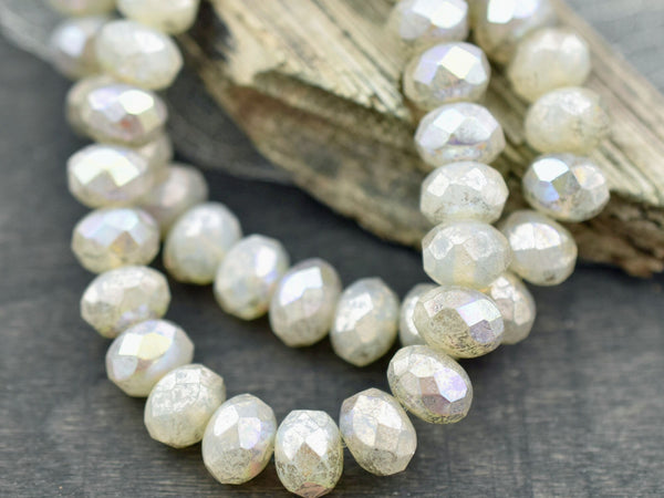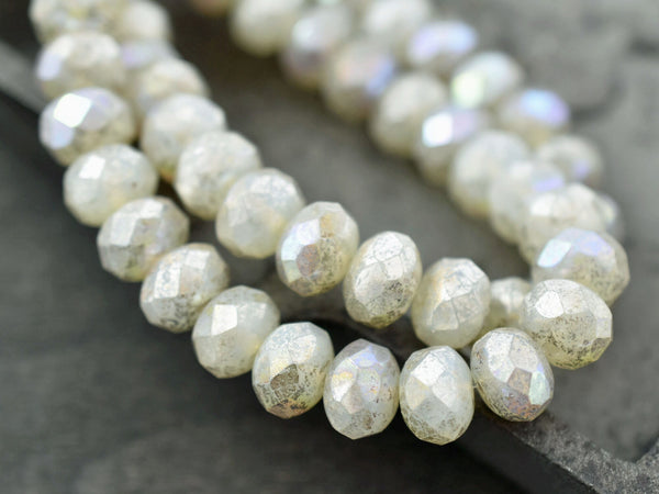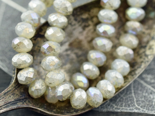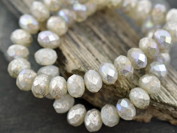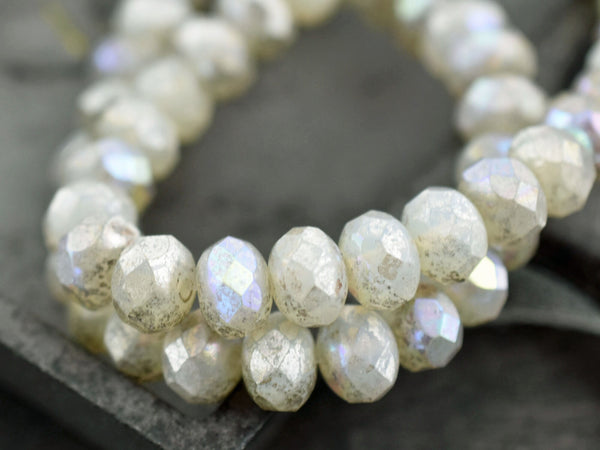 Silver Mercury Washed Ivory Opal AB Fire Polished Rondelle Beads - 3x5mm, 5x7mm or 6x8mm