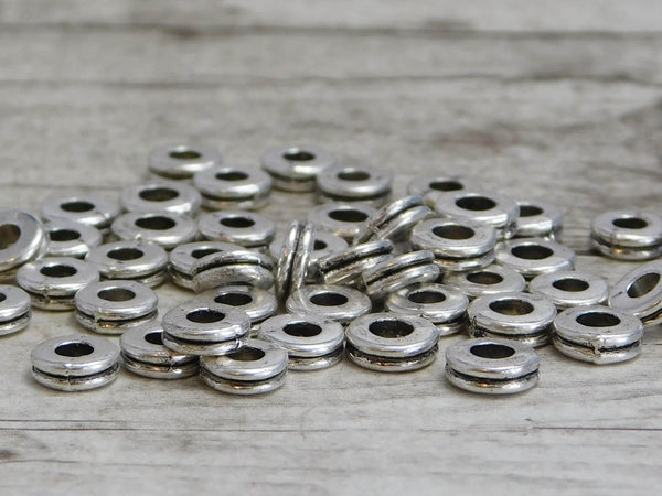 *100* 6x2mm Antique Silver Grooved Rondelle Spacer Beads