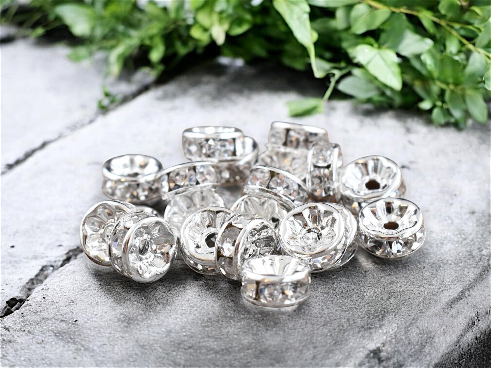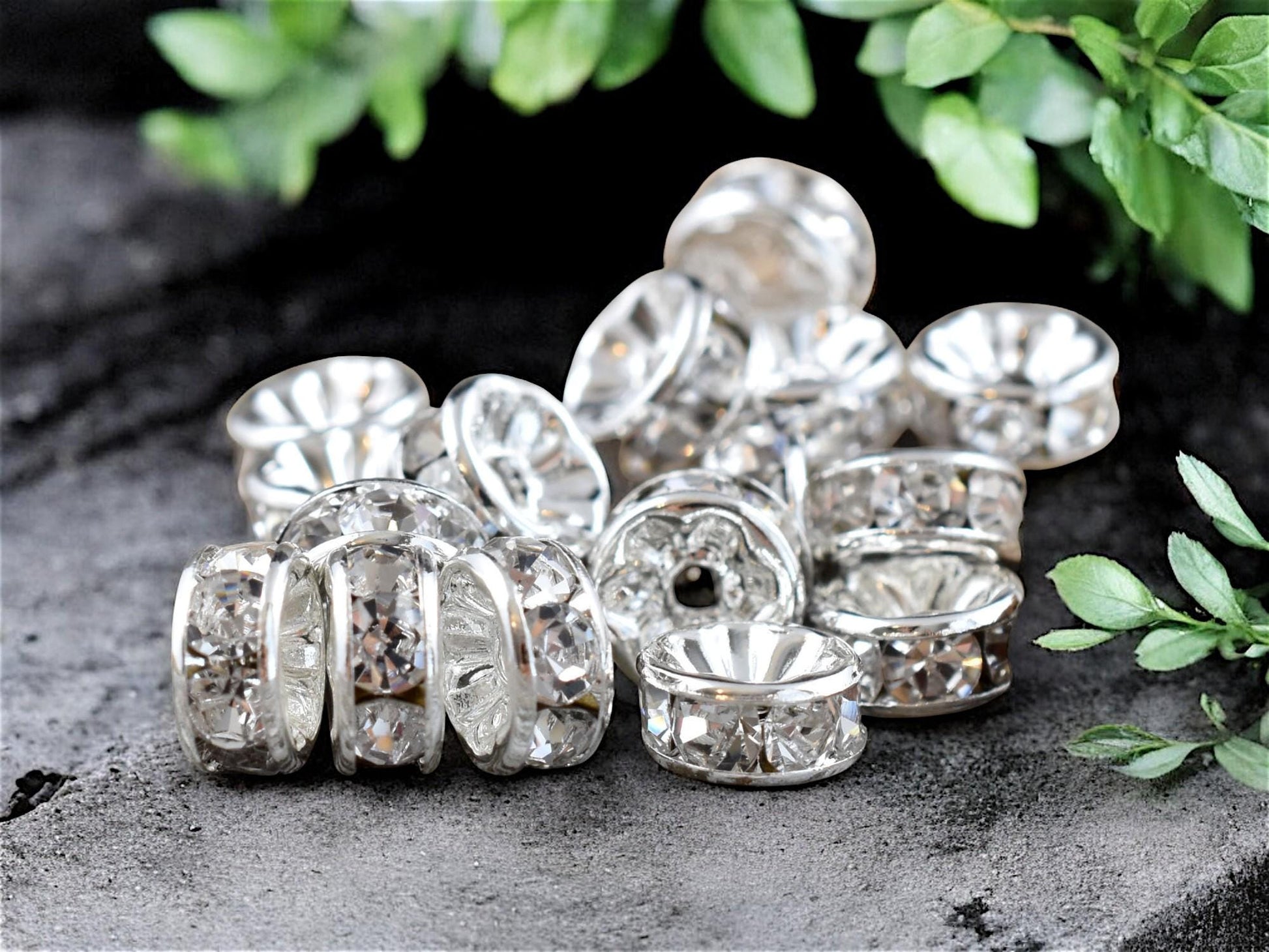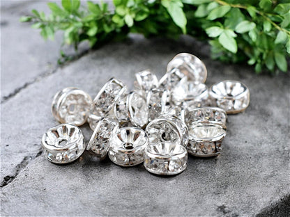 Silver w/ Crystal Rhinestone Rondelle Spacer Beads