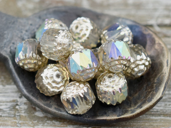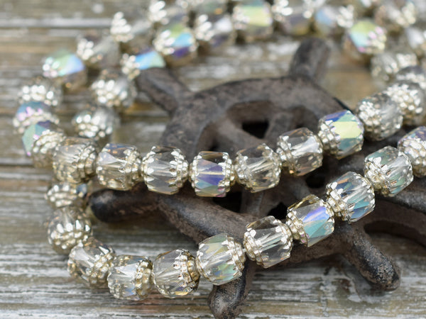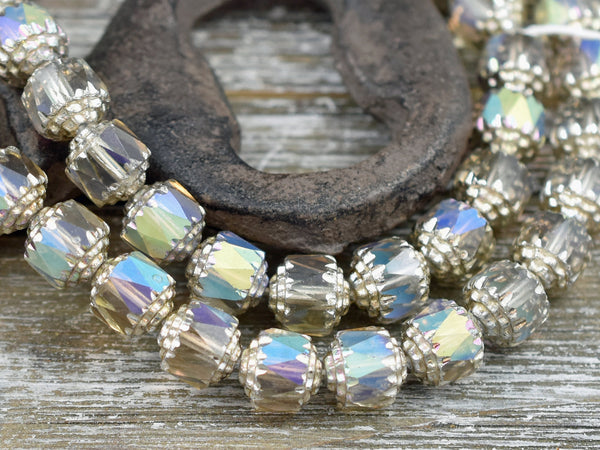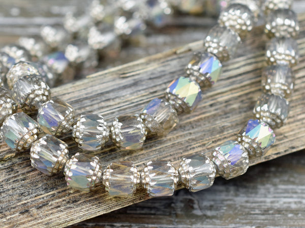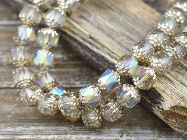 Silver Washed Smoke Apollo AB Fire Polished Cathedral Beads