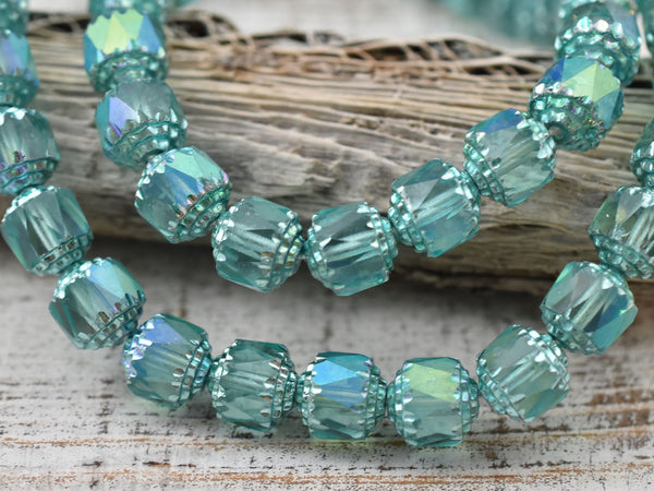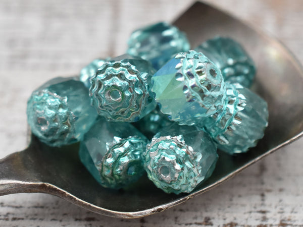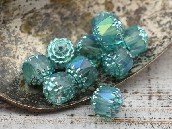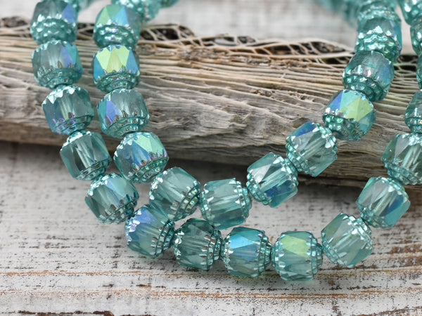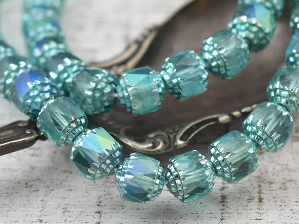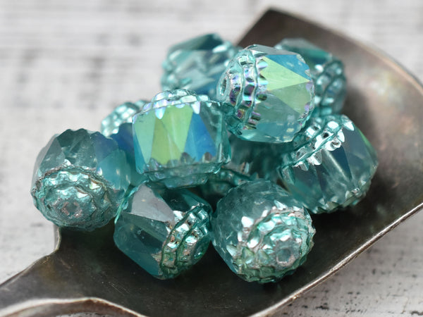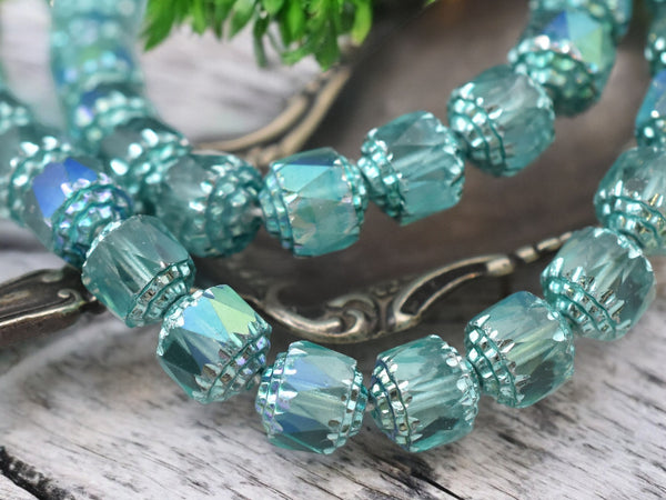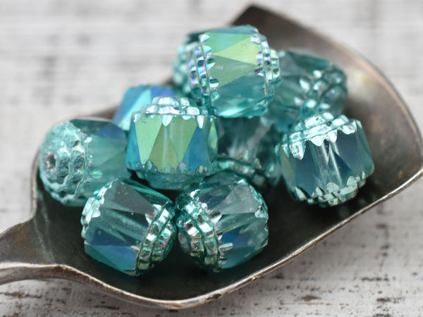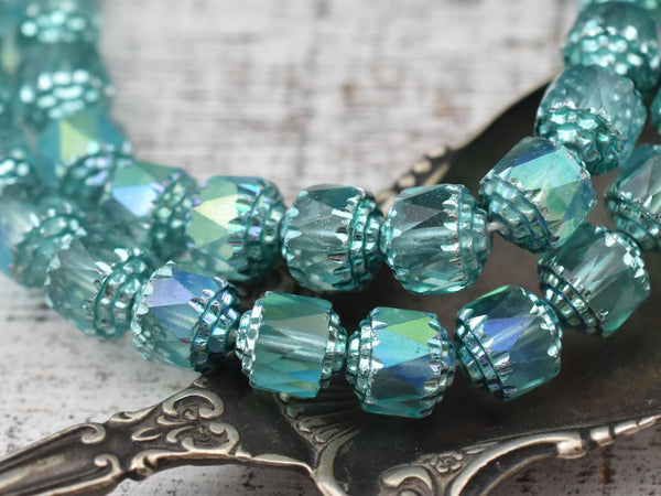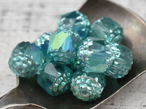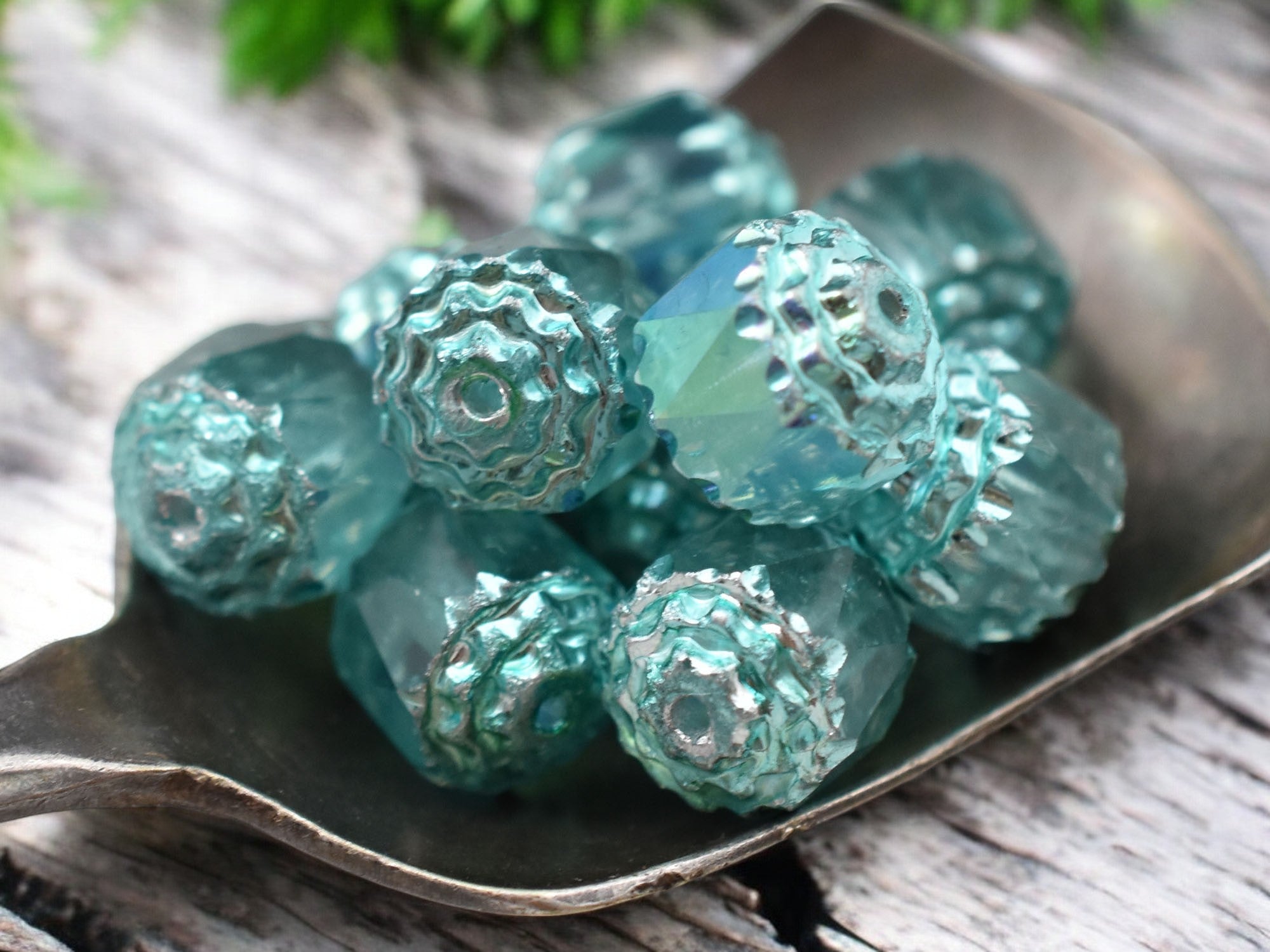 Silver Washed Teal Apollo AB Fire Polished Cathedral Beads