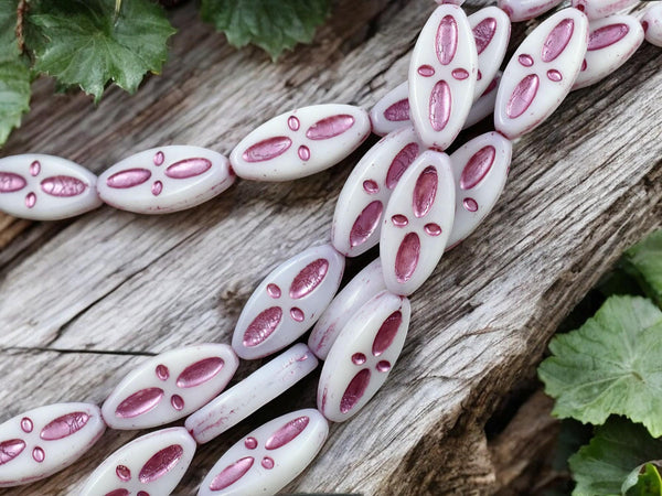 *8* 20x9mm Metallic Pink Washed White Marquise Oval Beads