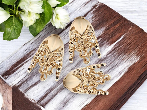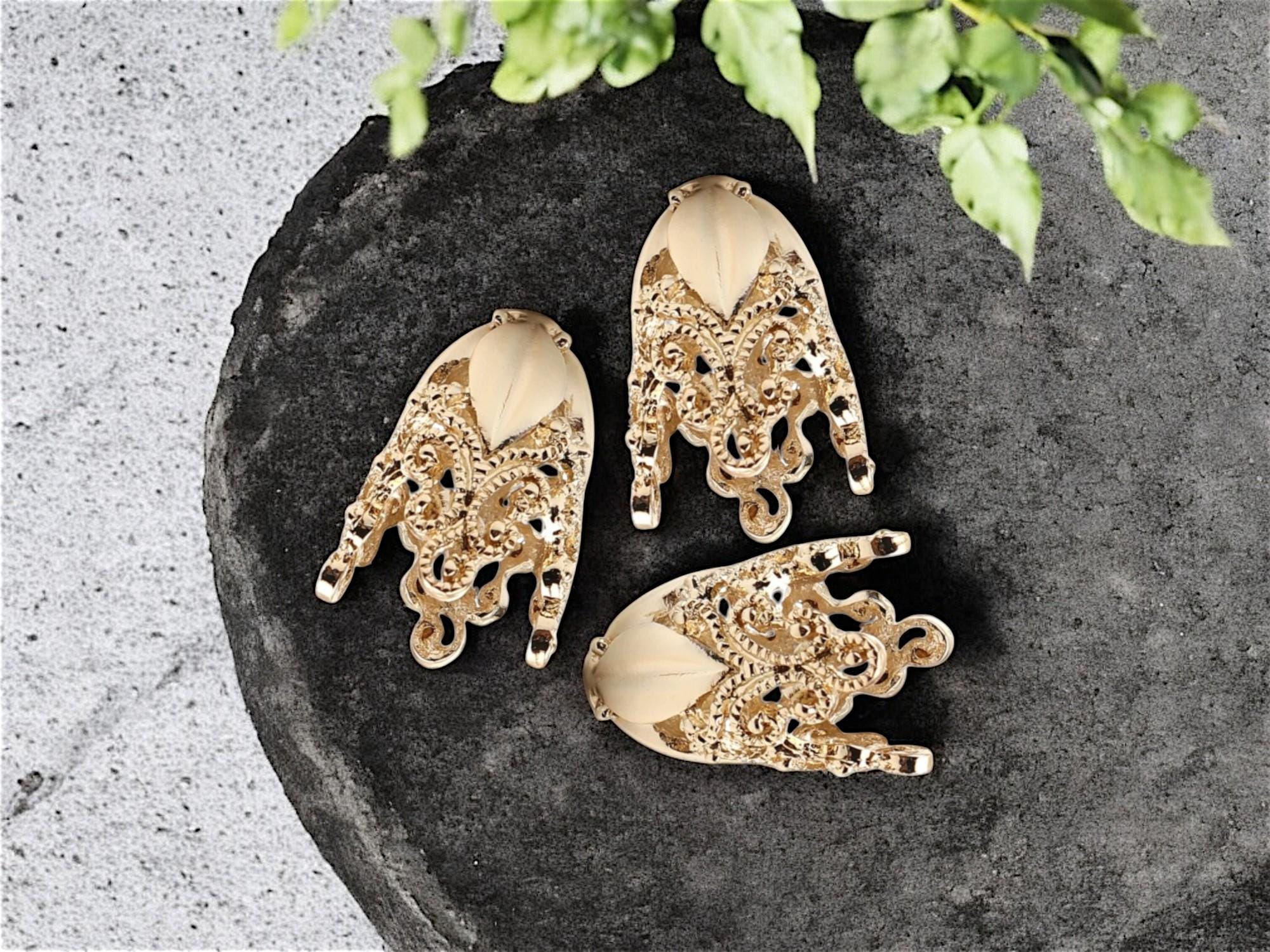 *2* 30x20mm 16k Gold Plated Ornate Tall Bead Caps