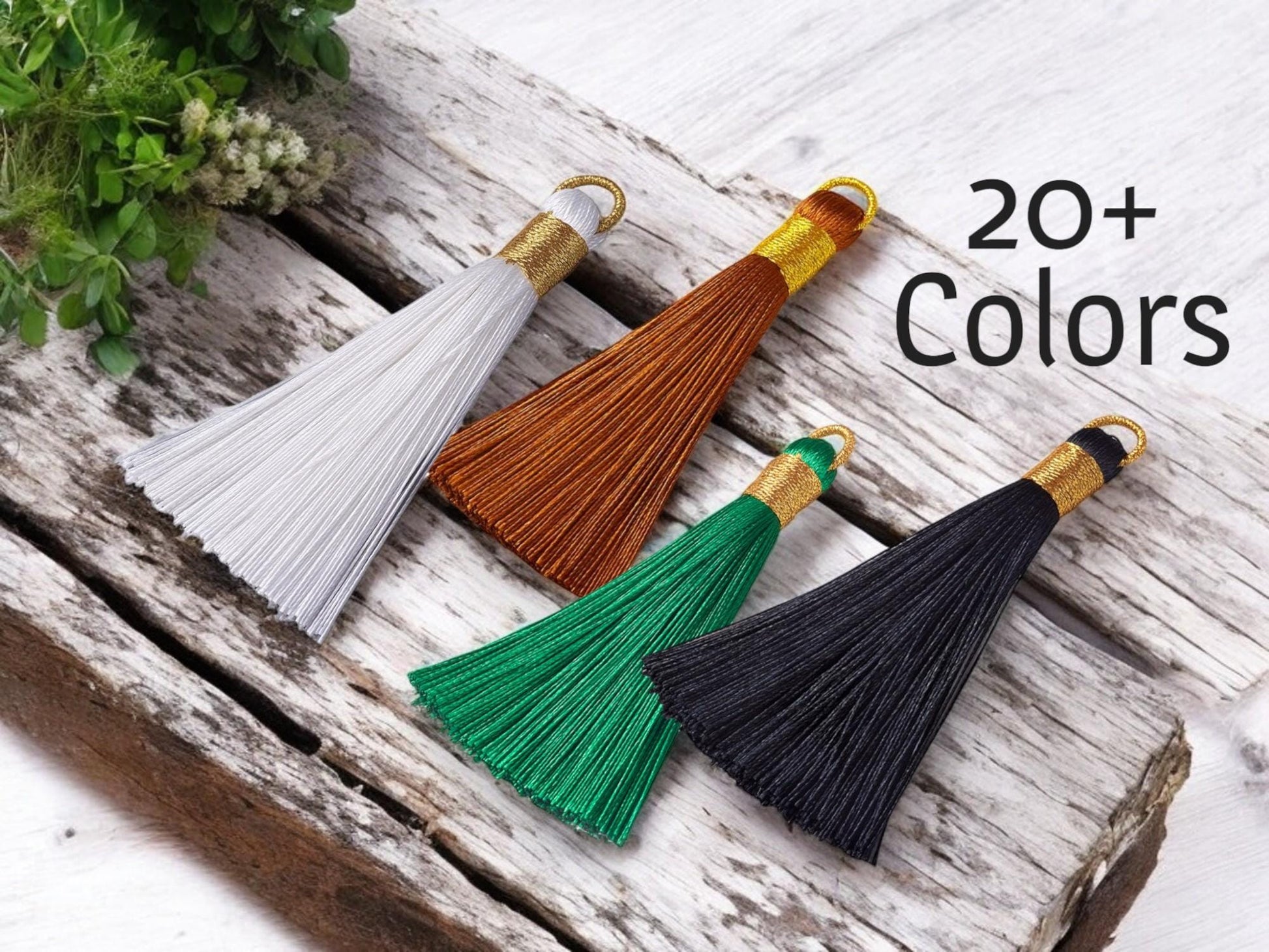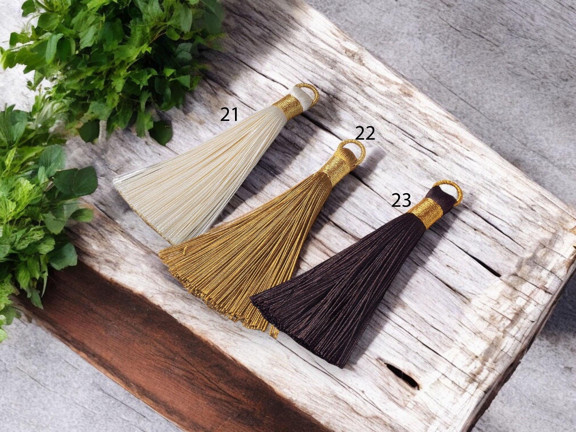 Gold Wrapped Polyester Silky Tassel Pendants - Choose Your color